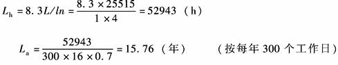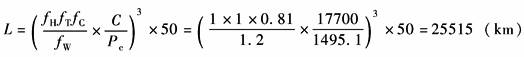 (假定fW=1,fT=1,fH=1,2个滑块,故fC=0.81) 设每分钟往返次数n=4,二班制,每班8h,开机率70%。 则用表寿命计算中式(3)可算出用小时表示的寿命