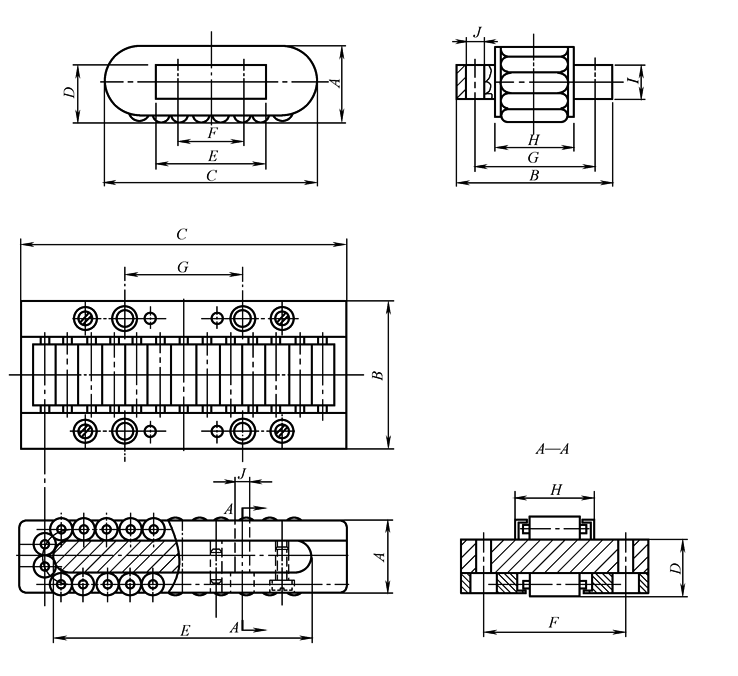 履带式滚动导轨块支承结构形式基本尺寸 |