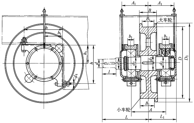 参见表起重机车轮型式、尺寸中表1 |