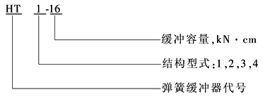 缓冲容量 W=0.40kN·m,结构型式为1型的弹簧缓冲器,标记为: