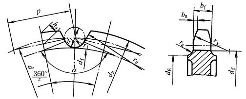 (1)基本参数与直径尺寸 链轮的基本参数和直径尺寸应符合下图和表1的规定 |