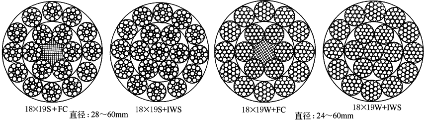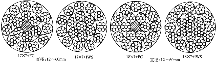 力学性能 钢丝绳结构:17×7+FC 17×7+IWS 18×7+FC 18×7+IWS 18×19S+FC 18×19S+IWS1 8×19W+FC 18×19W+IWS |