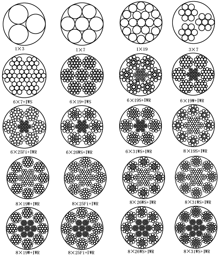 注:1.8.75mm钢丝绳主要用于电气化铁路接触网滑轮补偿装置。 2.公称直径小于等于8.0mm为钢丝股芯,大于等于8.75mm为钢丝绳绳芯。 3.本标准适用于仪表和机械传动、拉索、吊索、减振器减振等使用的不锈钢丝绳。 |