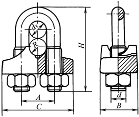 注:1.允许采用性能不低于表中的材料代用。 2.当绳夹用于起重机上时,夹座材料推荐采用Q235-B钢或ZG270-500制造。 |