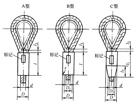 注:接头号的选取与钢丝绳公称直径及其金属截面积有关。按表中钢丝绳公称直径,再根据钢丝绳的金属截面积选取接头号。 介于表中钢丝绳公称直径系列之间的钢丝绳,应按下列原则靠入系列: a.在直径6~14mm范围内,所选用的钢丝绳公称直径按小数位四舍五入靠入系列。例如:f 9.3mm靠f 9mm。 b.在直径大于14~40mm范围内,所选用的钢丝绳公称直径与表中钢丝绳公称直径之差小于1mm时,靠入系列小值,当直径差大于或等于1mm时,靠入系列大值。例如:f 22.5mm靠f 22mm,f 31mm靠f 32mm。 c.在直径大于40~60mm范围内,所选用的钢丝绳公称直径与表中钢丝绳公称直径之差小于或等于2mm时,靠入系列小值,当直径差大于2mm时,靠入系列大值。例如:f 46mm靠f 44mm,f 47.5mm靠f 48mm。 适用范围 适用于直径6~60mm,公称抗拉强度不大于1770MPa的圆股钢丝绳的接头;不适用于单股和异型股钢丝绳。 使用条件 a.接头在使用中不允许受弯。 b.接头工作环境温度范围-40~150℃。 质量要求 a.接头表面应光滑,无裂纹,无飞边、毛刺。 b.采用套环时接头基本参数要符合表1规定。 c.当无套环时,接头到绳套内边的距离必须大于或等于3倍的吊钩宽度或15倍钢绳直径。 d.C型压制接头,钢丝绳端部应封在接头内部,距离头部端不得大于0.5d,A型和B型接头钢丝绳端部必须超出接头0.5~1.0d。 e.接头合模错移量:径向不得超过0.5mm,轴向不得超过1mm。 f.接头圆度公差不得超过1mm。 g.接头强度应能承受钢丝绳最小破断拉力的90%的静载荷以及承受钢丝绳最小破断拉力15%~30%的冲击载荷。 |