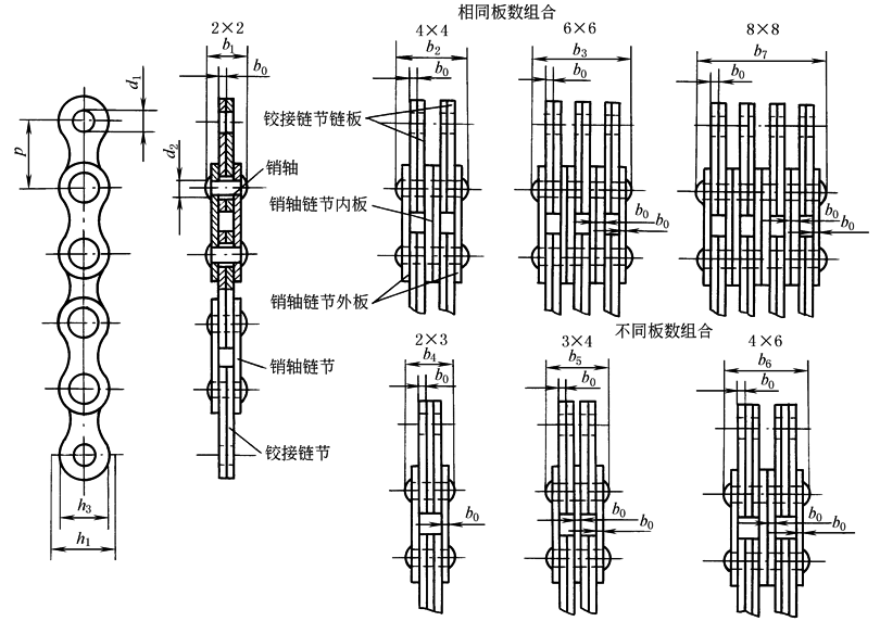 注:不同厂家生产的同一规格的板式链不应混装在一起使用。 |