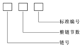 标记示例: 1)节距12.7mm,链板组合2×3,整链节数41节的重型板式链,标记为:LH 0823-41GB/T 6074—1995 2)节距25.4mm,链板组合4×4,整链节数49节的轻型板式链,标记为:LL 1644-49GB/T 6074—1995 链号由两个字母和四位数字组成(见表1、表2),两个字母为型式代号,前两位数表示节距代号(为1.5875的倍数),后两位数分别表示销轴链节的链板数和铰接链节的链板数 表1 |